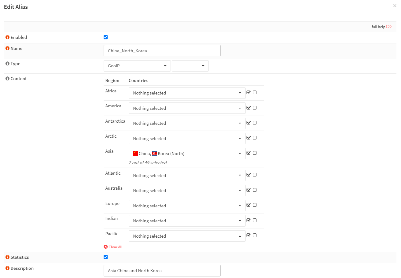 Wählen Sie den neu erstellten GeoIP-Alias, wie zum Beispiel